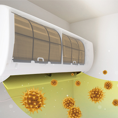 使わない間にエアコン内部にたまったホコリやカビなどの汚れは、エアコンを起動すると空気と一緒に室内に拡散します。